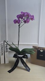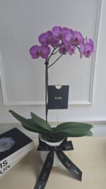 La Marcela es una orquídea natural de estación, presentada en una maceta decorativa y envuelta en nuestro característico papel importado de textura mate, con colores variados a elección.